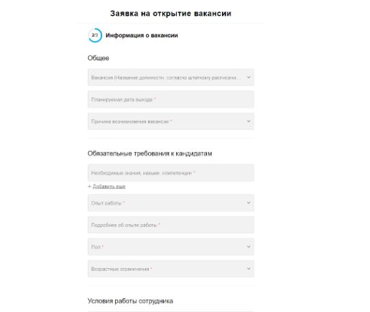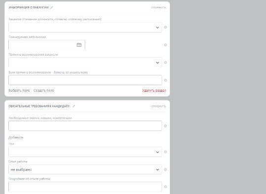 Открывая форму по ссылке, заполняются требования к вакансии.