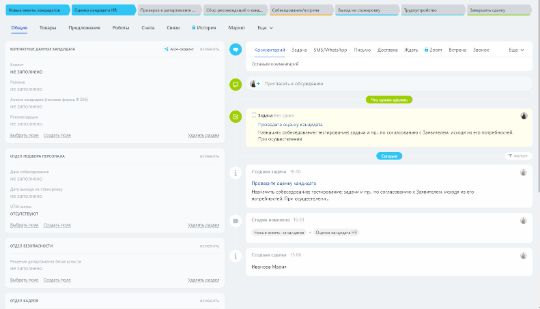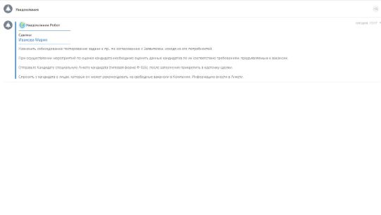 Далее, в зависимости от сценария в организации, соответствующим ответственным сотрудникам направляются уведомления, задания и тд. Например, сверить со штатным расписанием, провести оценку кандидата (для отдела безопасности) и тд.